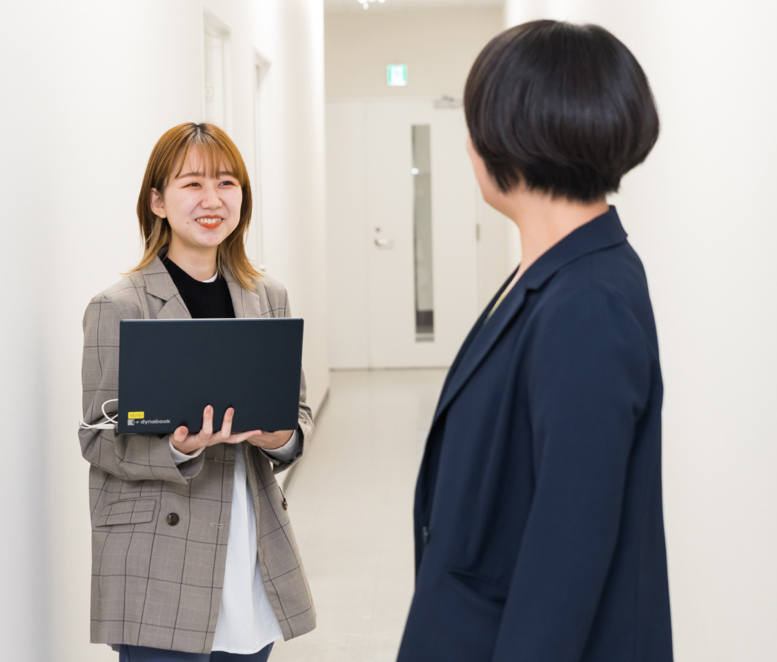 さまざまなご要望に応えるべく企画を検討し、提案していくのが営業としての私の仕事です。一方でお客さまから受けたご依頼を社内の各担当部署に割り振り、舵取りもしていかなければなりません。私は入社3年目でまだ若手の立場ですが、どの部署の方も私の言葉にしっかり耳を傾けてくださり、いつも助けられています。人柄がよいことと、このアットホームな雰囲気は当社ならではの魅力。どんなことでも気軽に相談できる環境が心地よく、とても気に入っています。