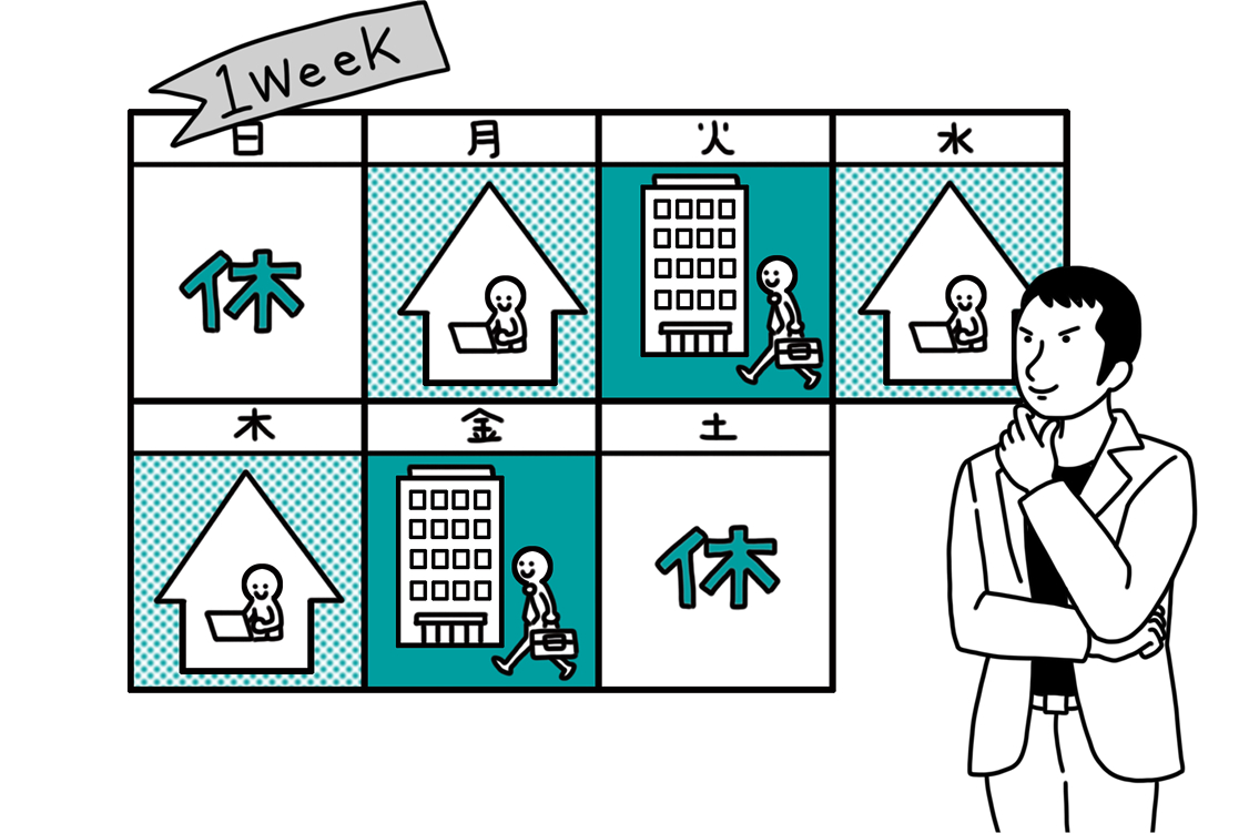 1週間のスケジュールは、週3日在宅勤務、週2日会社へ。在宅時の休憩時間は家事をこなしたりと、ワークとライフの時間を巧みに交差。以前よりもタイムマネジメントが上手になり、終業後にはゆとりが。在宅時は好きなBGMをかけ、自分流のワーク環境でリラックス。心身共にヘルシーに!