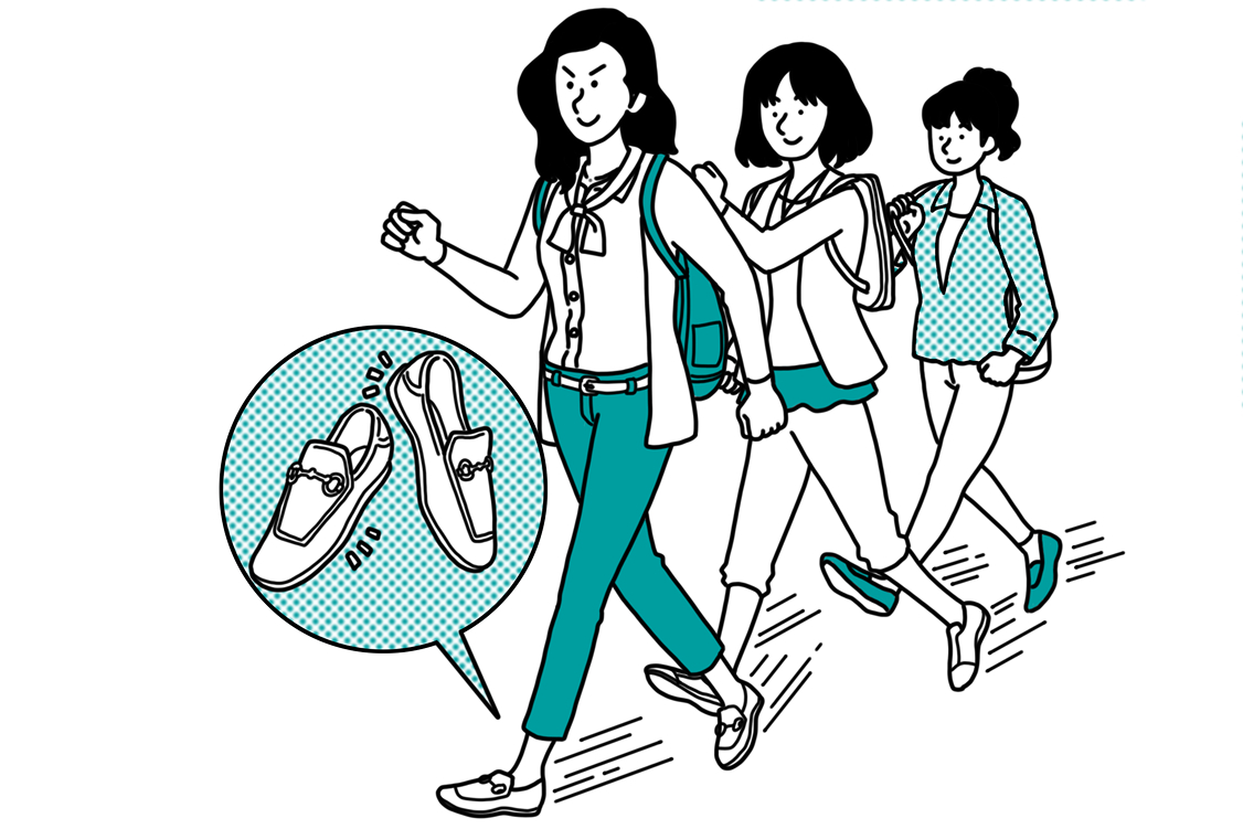 通勤だけで毎日平均8,000歩!後楽園駅から会社までの道のりは、ひたすら真っ直ぐ歩くこと約15分。よく歩くので、ヒールのないぺたんこ靴を何足かコレクションして、愛用しています。早歩きウォーキングで、日ごろのデスクワークの運動不足も解消できていると感じます。