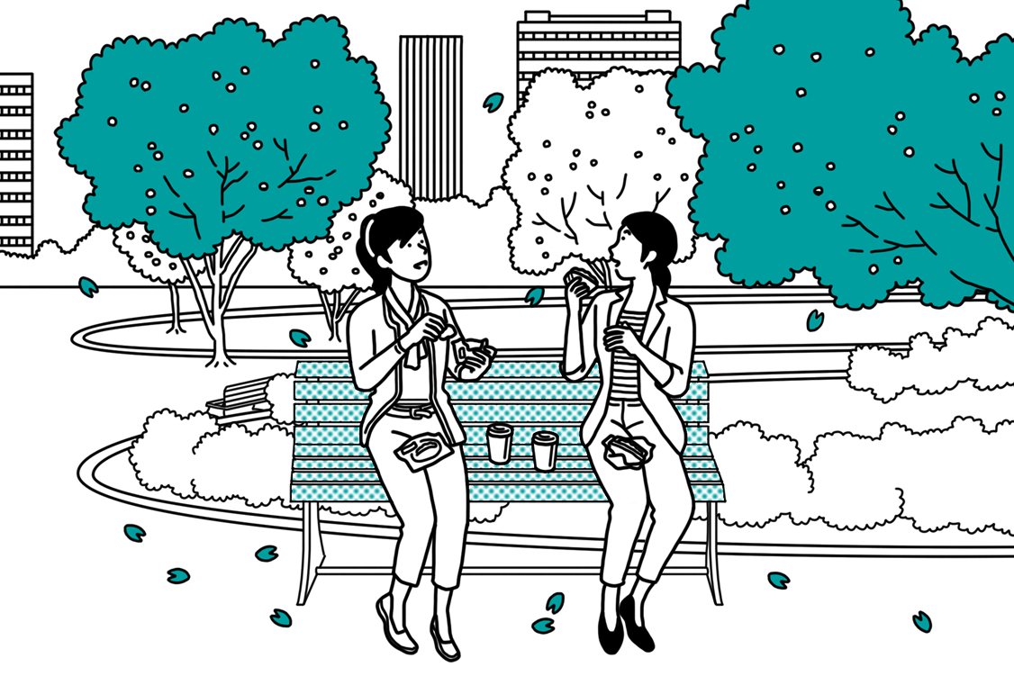 小石川本社は、都心で利便性のある場所にありながら、周辺には緑地が多い環境。桜の名所として知られる「小石川植物園」と「播磨坂」がすぐ近くにあります。コロナ禍以前は、桜が見ごろを迎える時期にランチをテイクアウトして、お花見ピクニック気分を満喫していました。