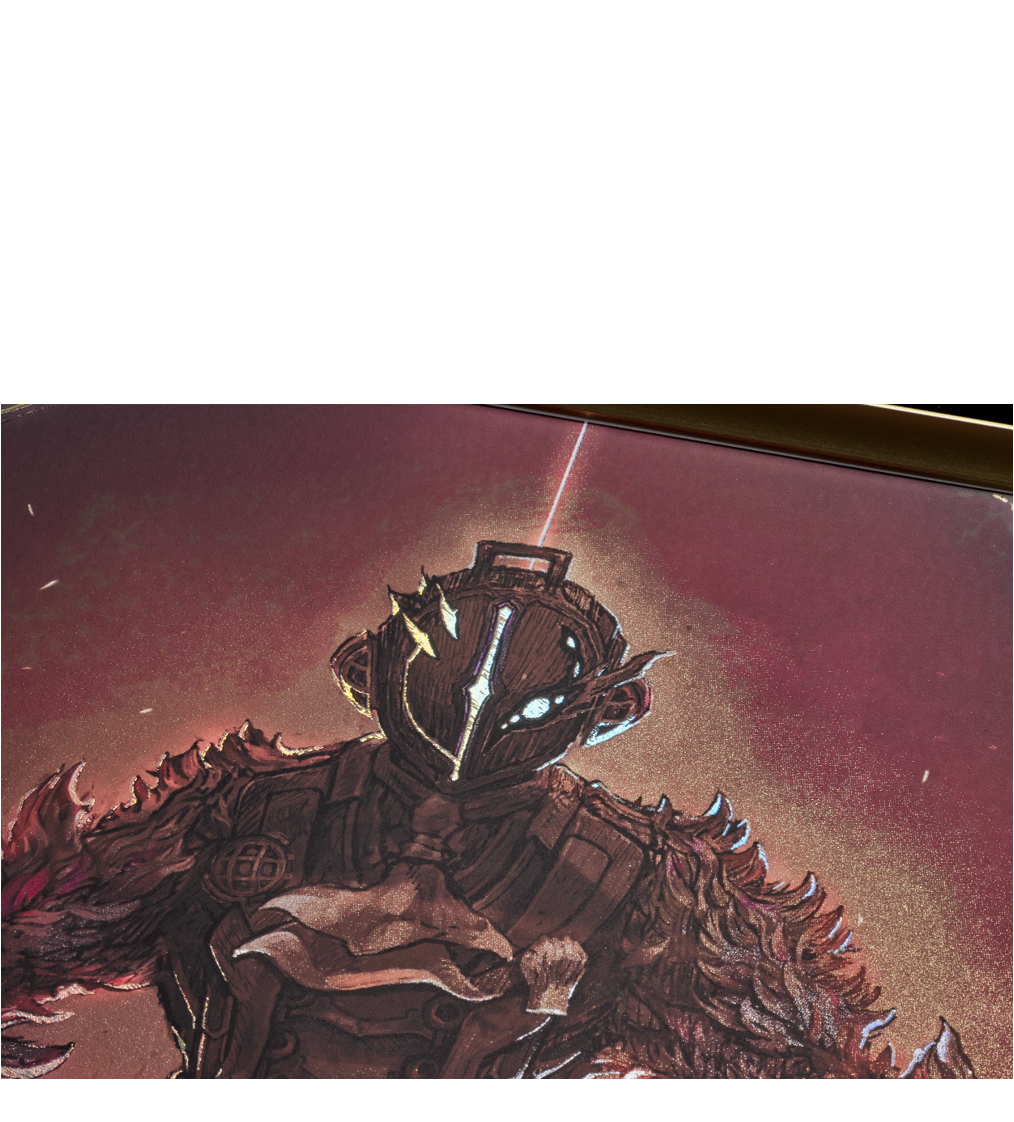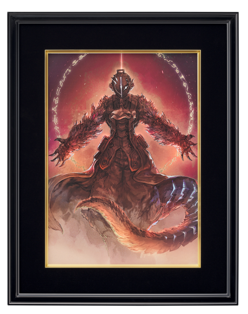 本作の印刷部分は高精度デジタルプリントに職人の手作業によるシルクスクリーンを施し、キャラクターや背景には金箔や銀粉などを贅沢に使用することで作品の魅力と世界観を大胆に表現しています。額装も高級商品に相応しい国産ハンドメイド仕様の高級木製額を採用。さらに、つくしあきひと先生の直筆サインとエディションナンバーが本紙に入り、額装裏面には製造番号が記された特製の証明書が貼付された、細部にまでこだわった極上の仕上がりとなっています。